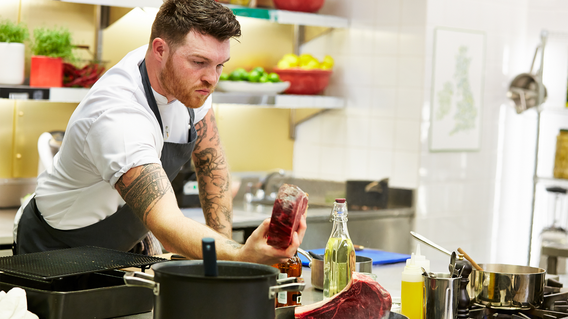 Top British chefs compete against each other and are scored by a panel of acclaimed judges for the chance to cook one course of a special four course banquet.