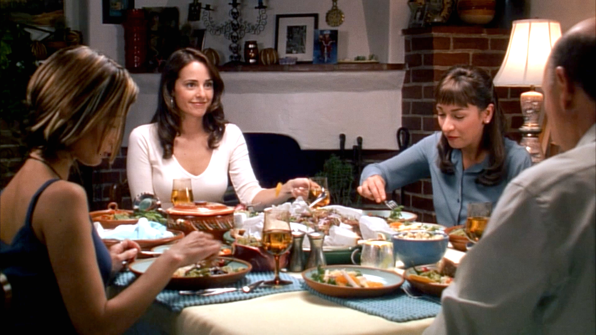 A chef and his three daughters discuss their career paths and love interests at the dinner table.